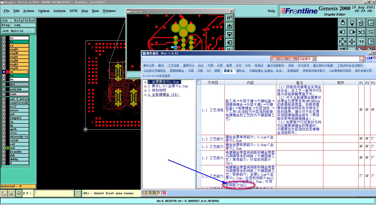 2021/8/19 15:15 393852 镀硬金焊盘2次干膜距周围导体至少要做到5mil注意核实文件是多处erp最小间距镀金间距也改成5.jpg