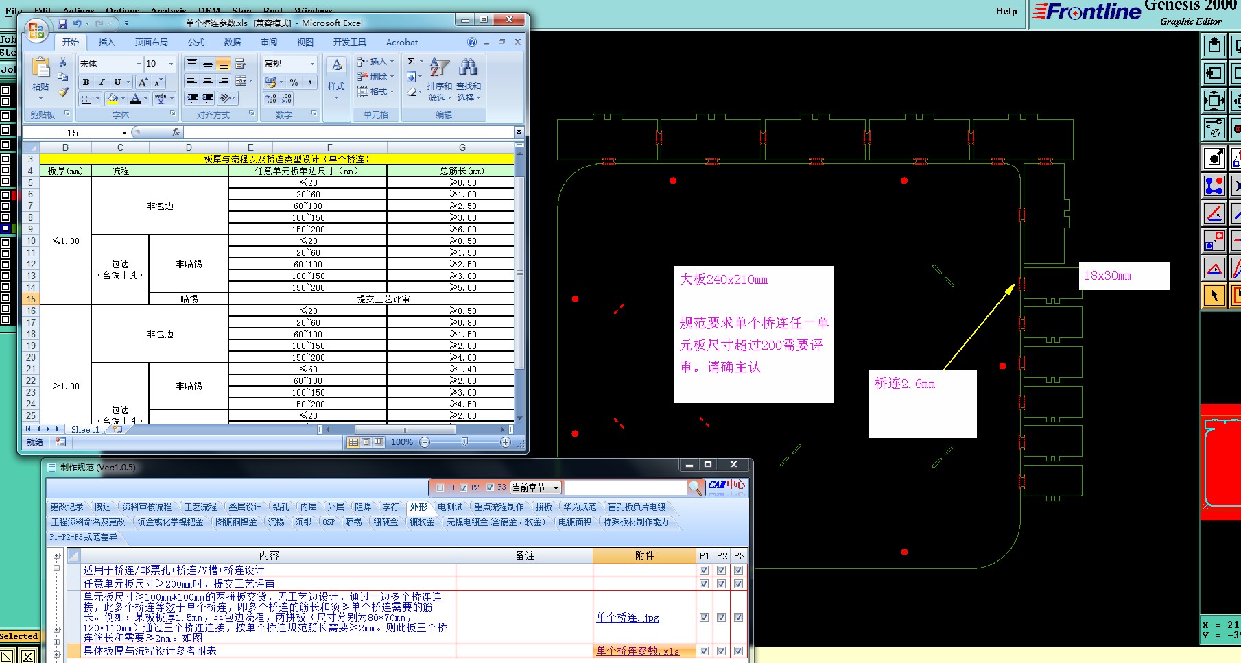 规范要求单个桥连任一单元板尺寸超200mm需要评审,请确认。现小板桥连不足有断板风险.jpg